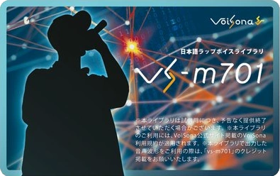 On October 11, 2024, Techno-Speech, Inc. announced the debut of an experimental masculine Japanese Rap Voice library developed under the code name "vs-m701" for VoiSona, and would be distributed via license card to a limited number of attendees of the M3-2024 Fall (M3-2024秋) doujin music and media mix event held on October 27, 2024.[1] Cards were limited to one per person. and it was noted that the trial library may be discontinued without notice at any time. It was noted that while "VoiSona" features a user interface designed to convert musical notes into singing, the "vs-m701" library was developed experimentally to test its usability in cases where the pitch is not clearly defined, such as in rap. Users were asked to provide feedback or notice of any issues and were encouraged to inform Techno-Speech, Inc.'s support team.[2][3][4] License cards sold out during the event.[5]